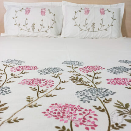 Kausheya Collection-Embroidered Bedsheet with Pillow Covers (Olive Green/Blue/Pink)
