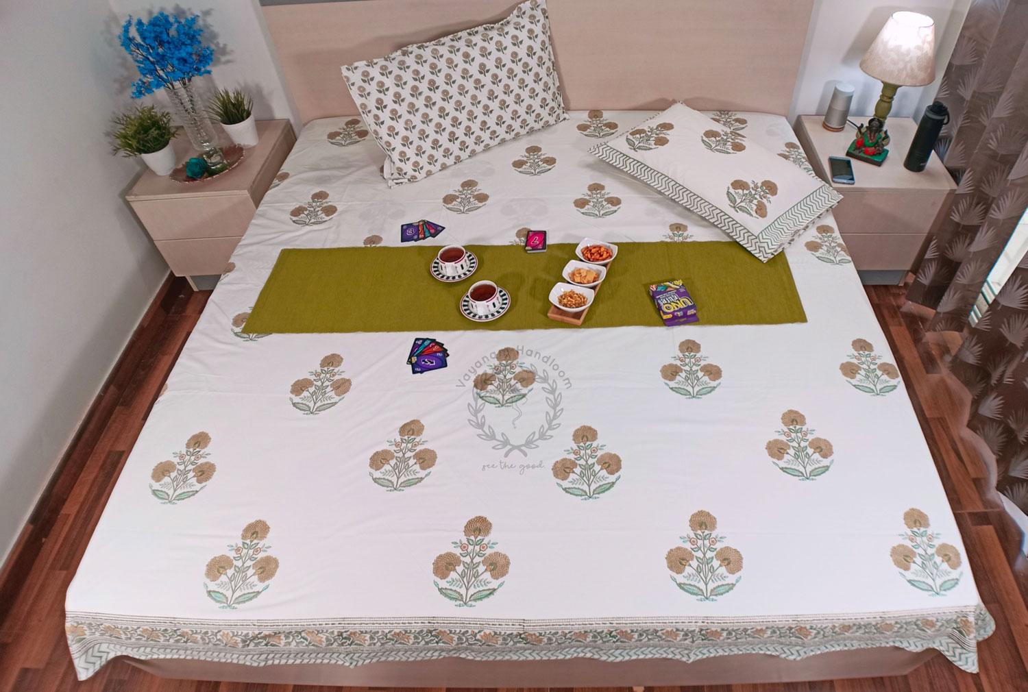 Shudham Collection- Hand block cotton bedsheet with multi color floral design