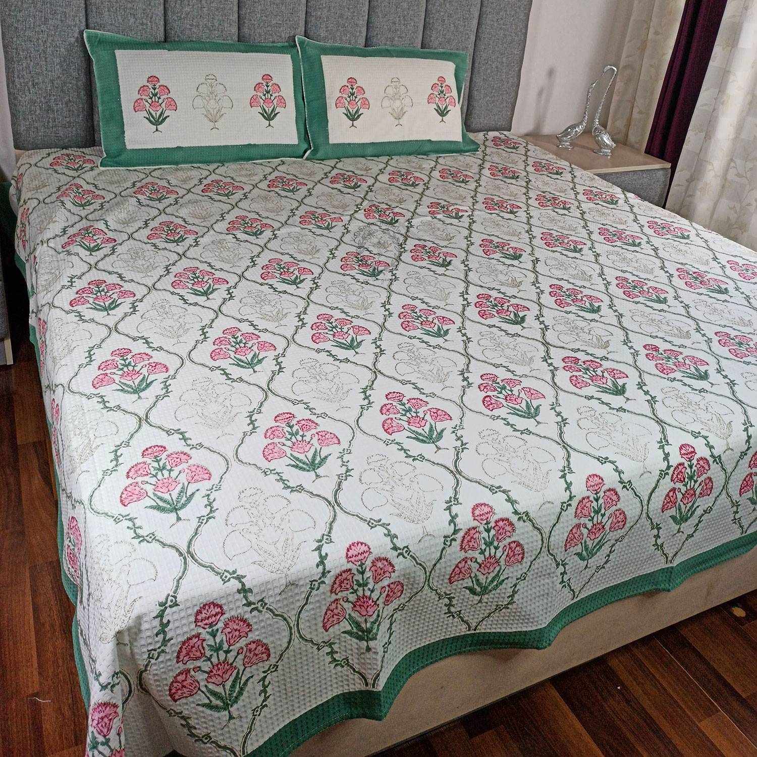 Pink Block Printed Waffle Cotton Bedcover ₹4,000.00