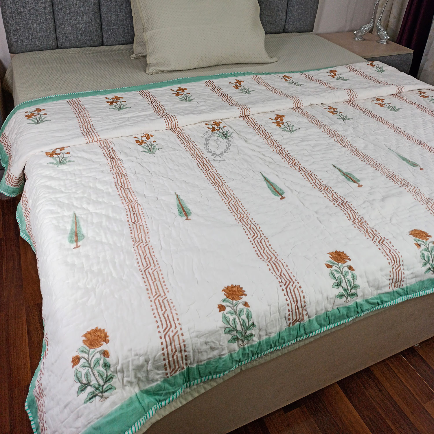 Orange Bloom Hand Block Printed Cotton Comforter ₹4,000.00