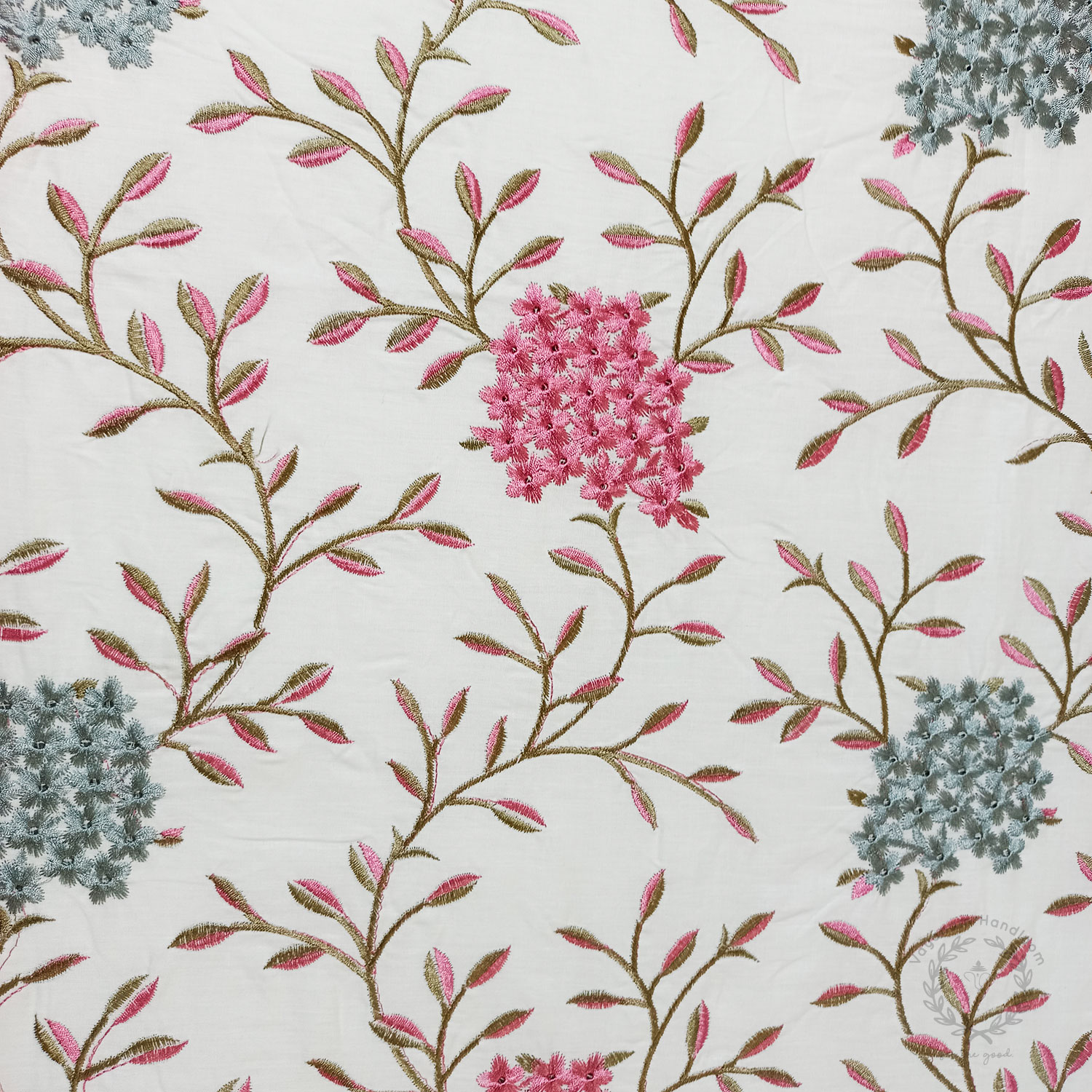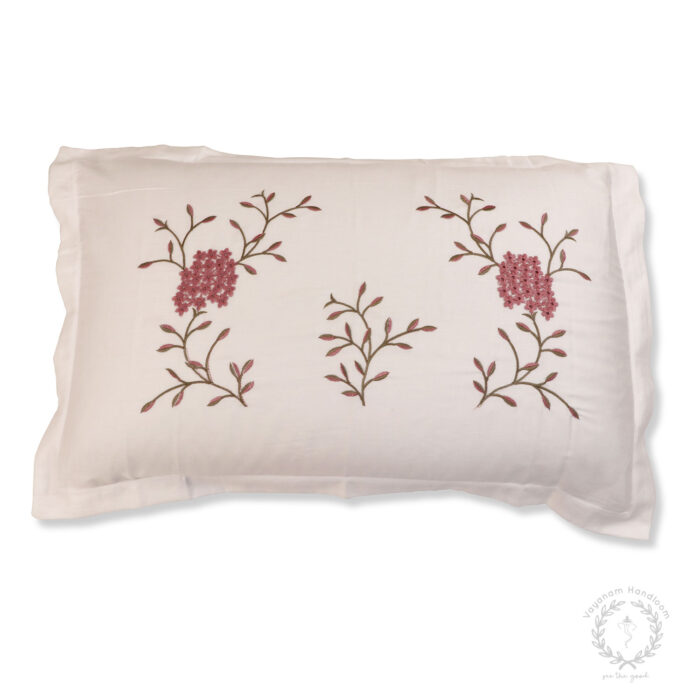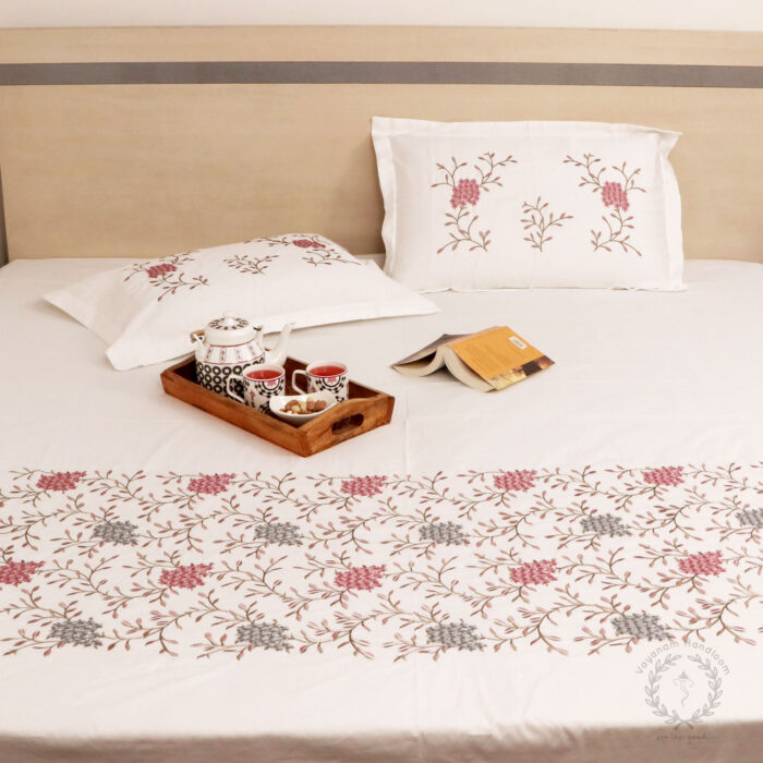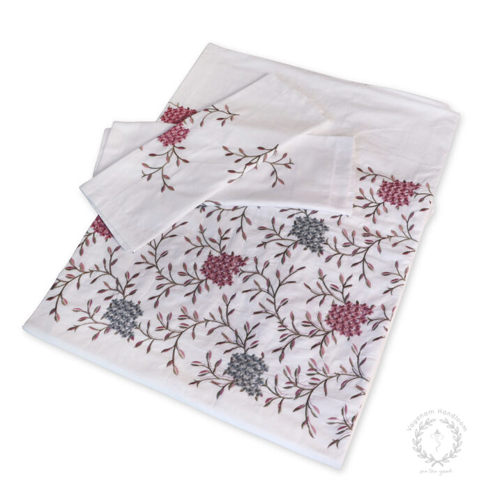 Add a touch of royalty to your bedroom with this beautifully embroidered bedsheet made from premium cotton fabric and embroidered with Greyish Blue and Pink thread.