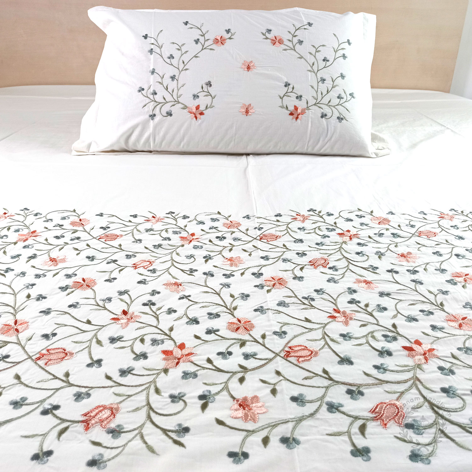 Add a touch of royalty to your bedroom with this beautifully embroidered bedsheet made from premium cotton fabric and embroidered thread.