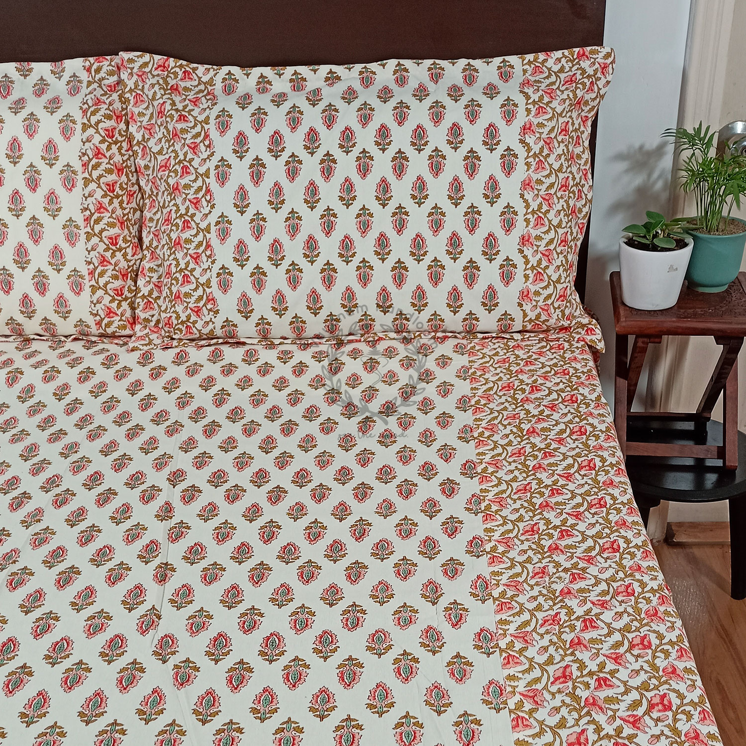 Shudham Collection- Hand block cotton bedsheet with multi color floral design