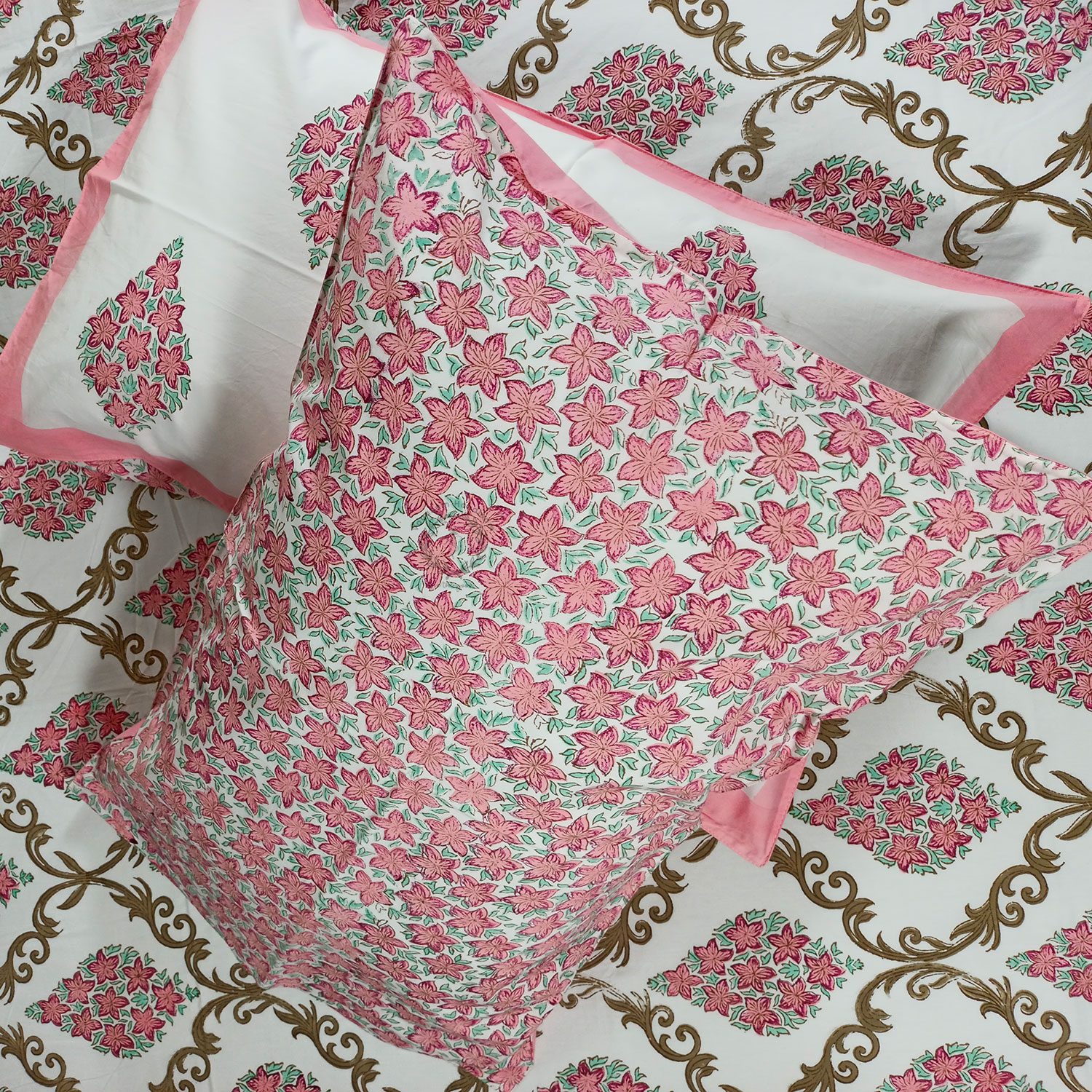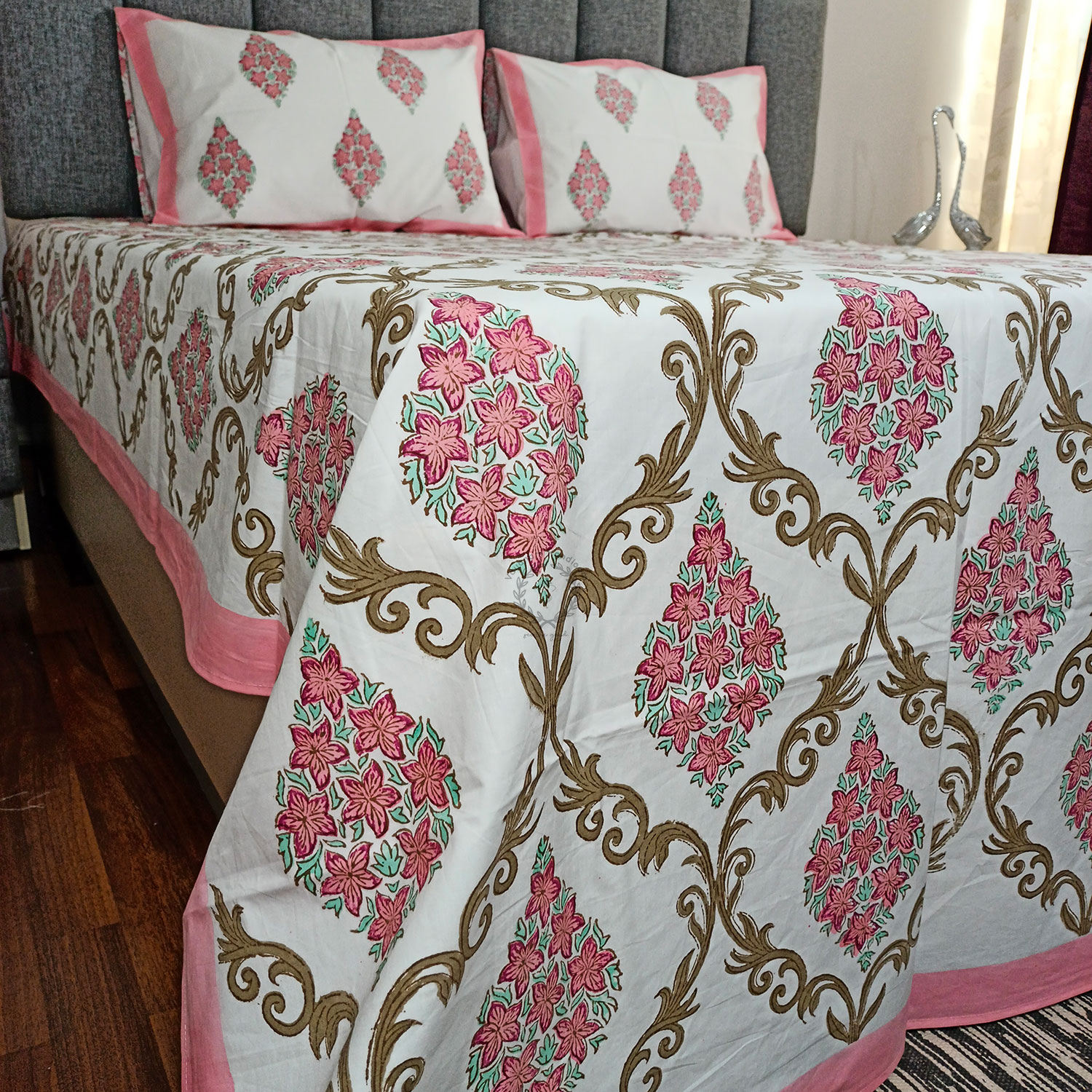 Handblock Printed Bedsheet With 2 Reversible Pillow Covers