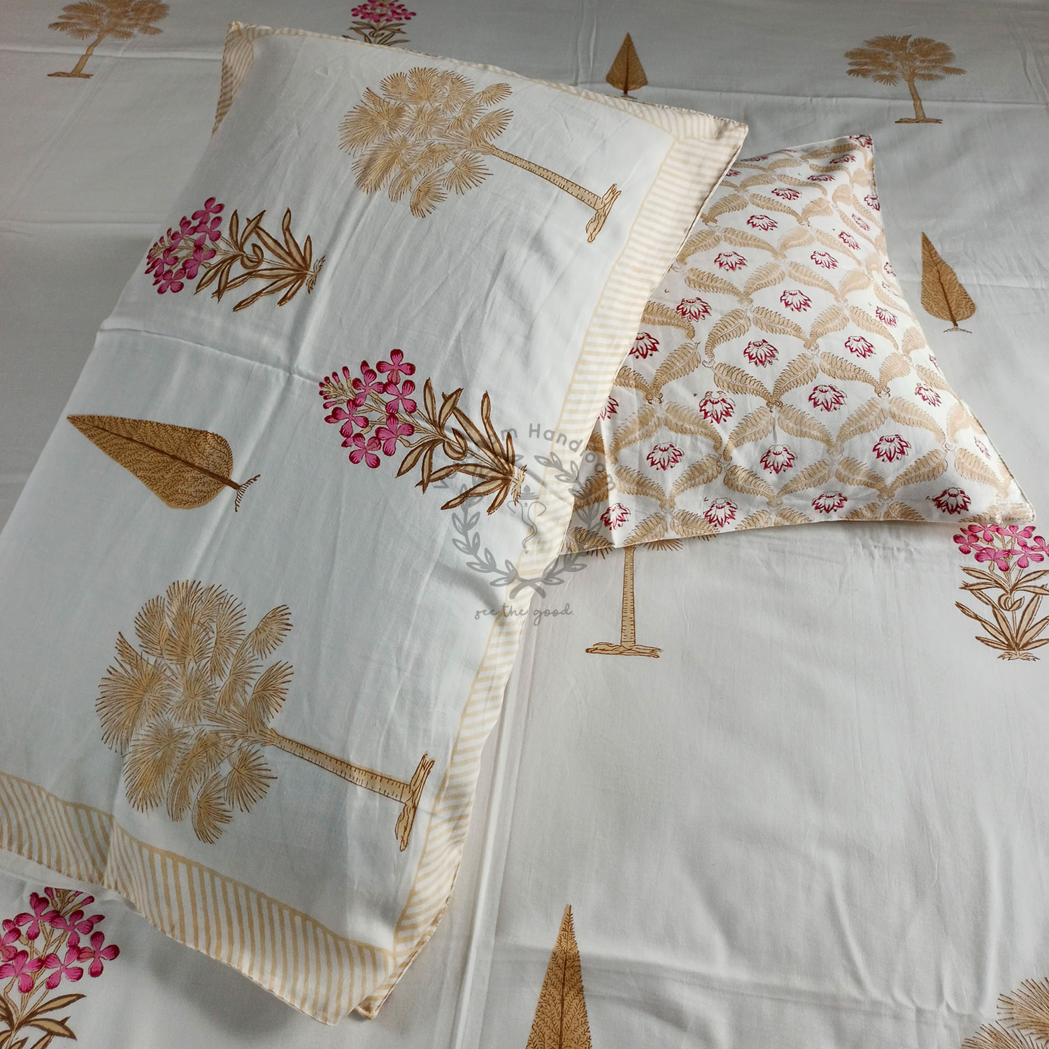 Handblock Printed Bedsheet With 2 Reversible Pillow Covers