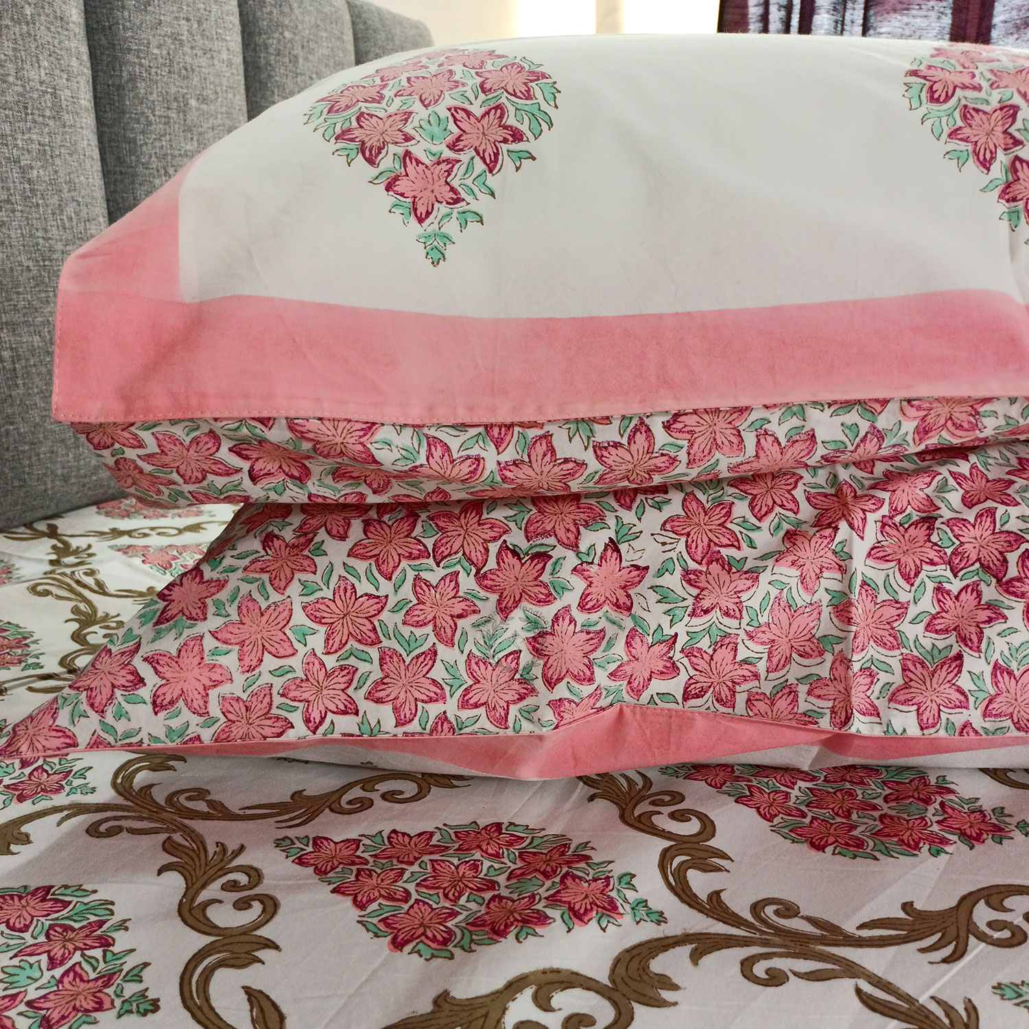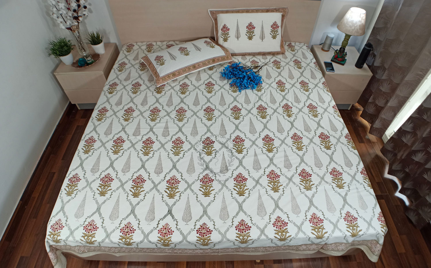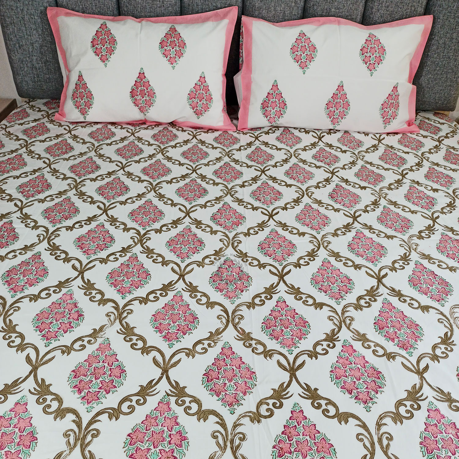 Handblock Printed Bedsheet With 2 Reversible Pillow Covers