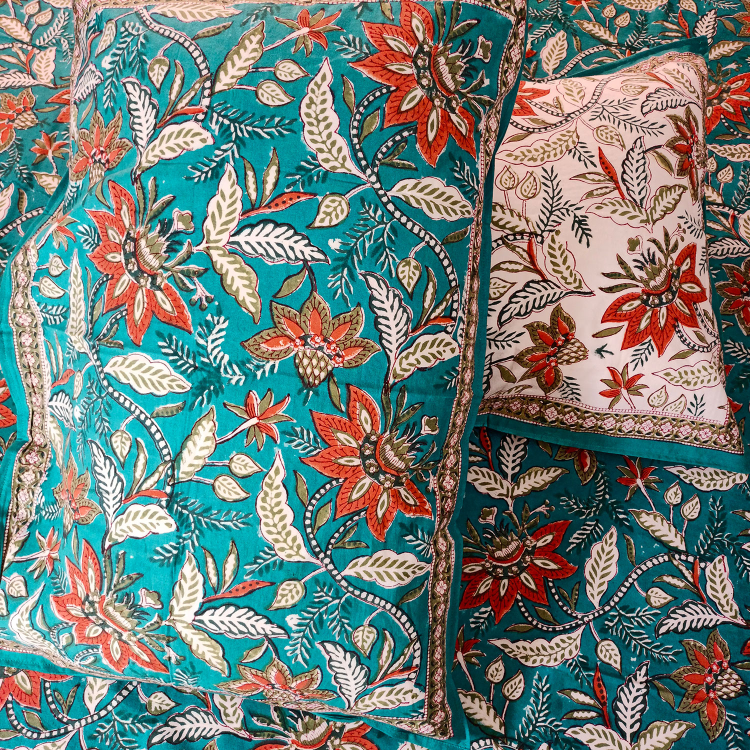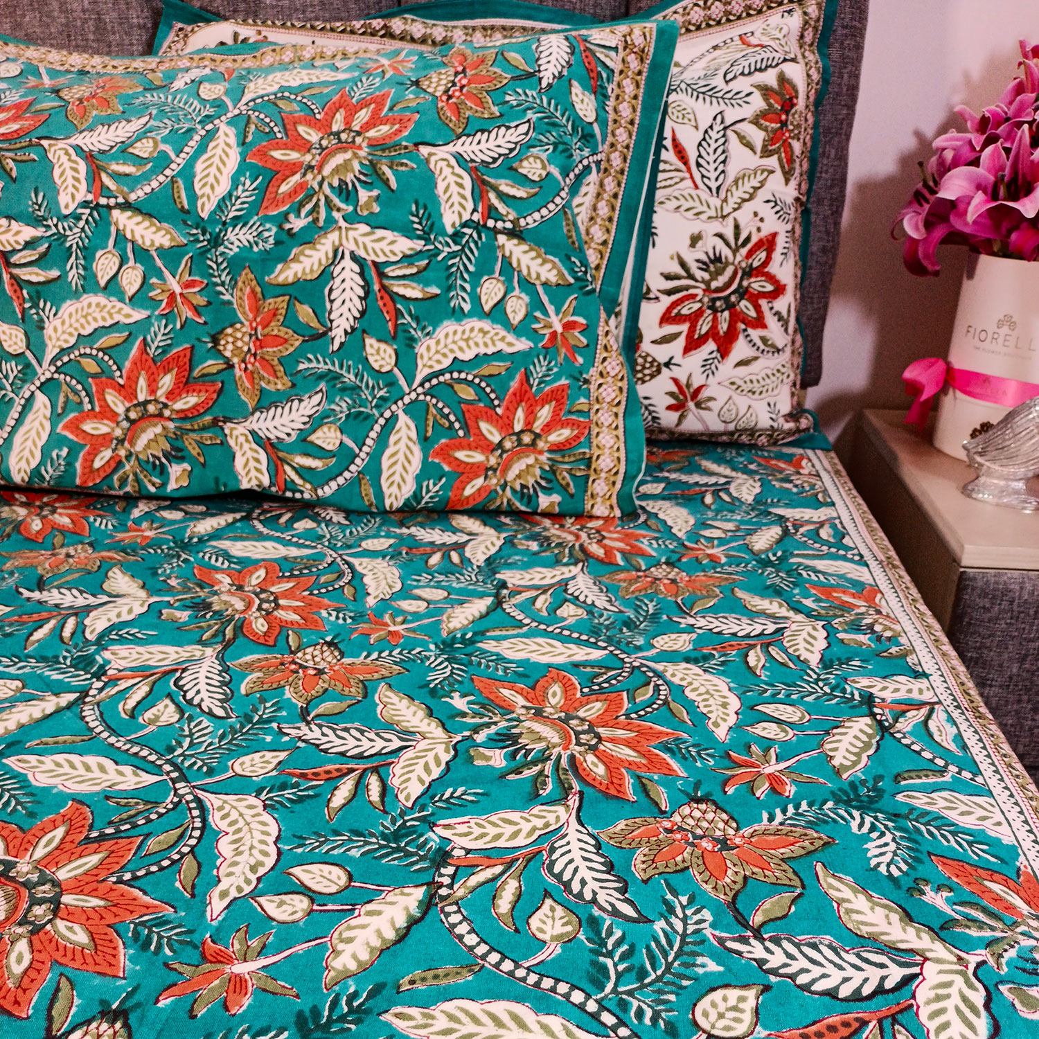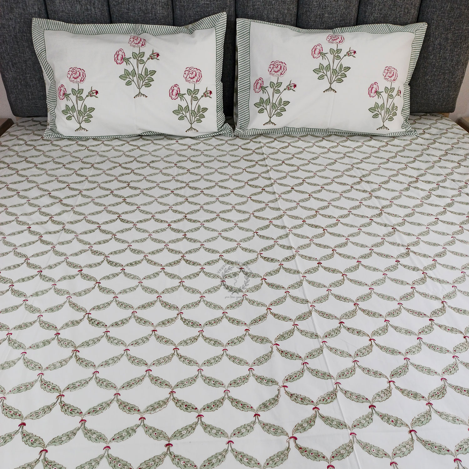Handblock Printed Bedsheet With 2 Reversible Pillow Covers