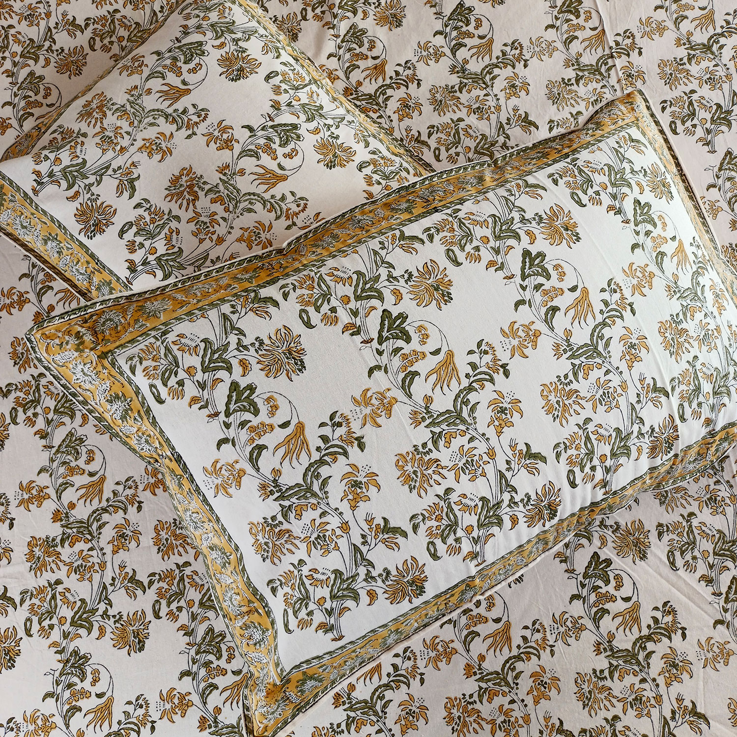 Gold Block Printed Cotton Bedsheet ₹2,500.00