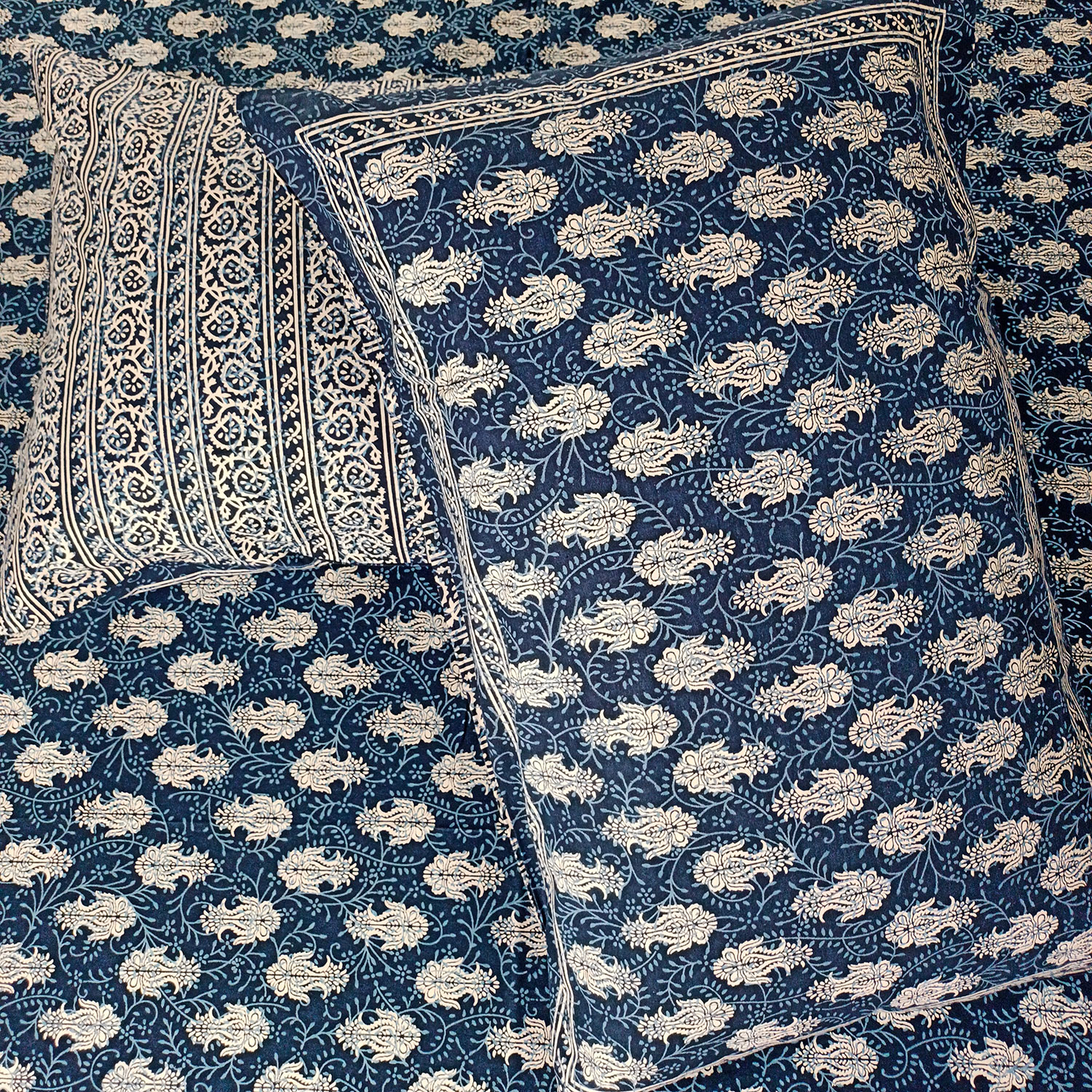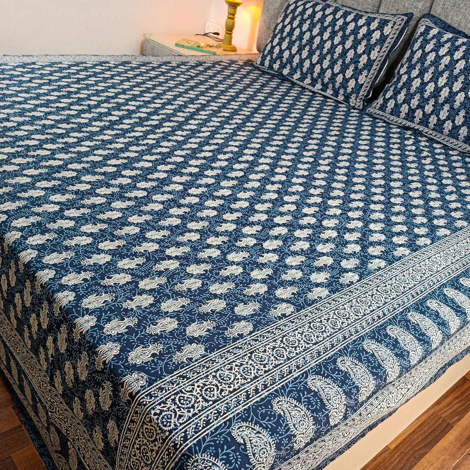 Truly Indigo Handblock Printed Bedsheet With 2 Reversible Pillow Covers