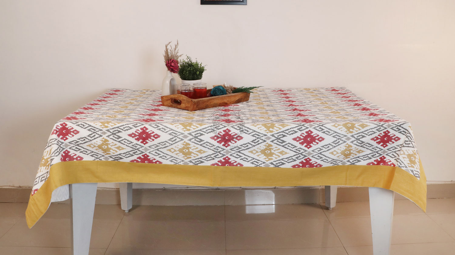 Digital Print Cotton Table Cloth with Red Border ₹1,000.00